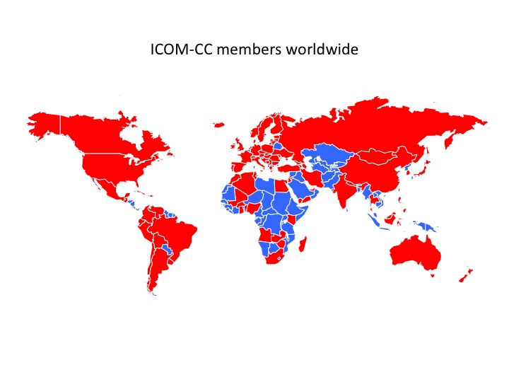 Home | About | ICOM-CC worldwide presence ICOM-CC worldwide presence Pictured: Almost 5,000 ICOM-CC members live and work in over 100 countries (red) Share Tweet Send page to a friend Attention An error has occurred; please try again later. The page has been sent Use the form bellow to send page to another friend. Use the form below to share this page to a friend